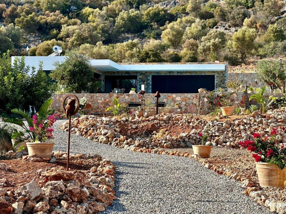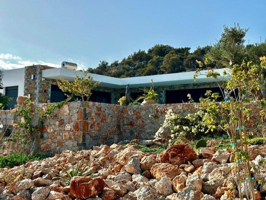 Gelegen auf einem privaten/eingezäunten Grundstück von über 5.000 m² mit Blick auf den wunderschönen Sandstrand von Almyros, Agios Nikolaos, Lasithi, Kreta. Dies ist eine neue, hochmoderne Villa mit drei Schlafzimmern und großem Pool, nur wenige