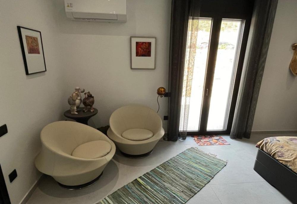 Das Haus ist 188 m² groß und verfügt über ein sehr großes L-förmiges Wohnzimmer mit einer voll ausgestattete Küche und mit großen Öffnungen, die von der gesamten Wohnung aus einen atemberaubenden Ausblick bieten. Neben der Küche befindet sich eine Speisekammer.