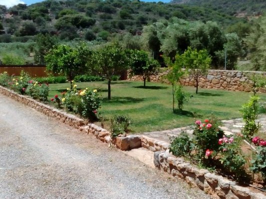 In den Gärten gibt es eine Kombination aus Blumen (hauptsächlich Rosen), Kakteen und einigen Obstbäumen.
