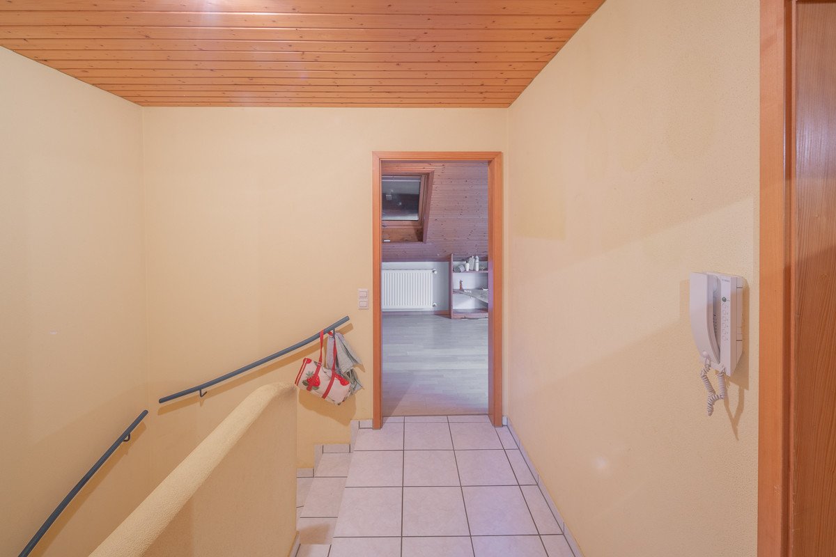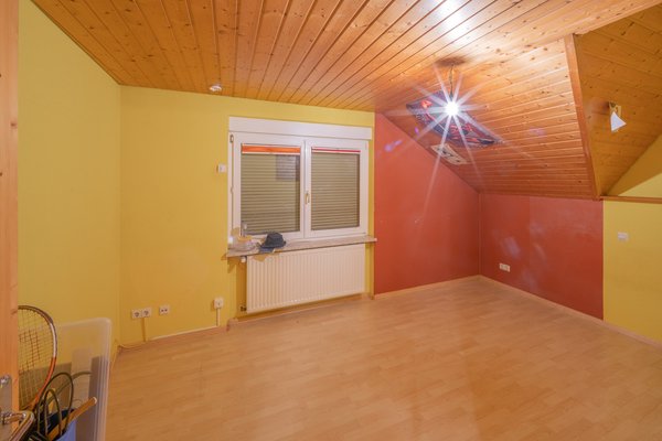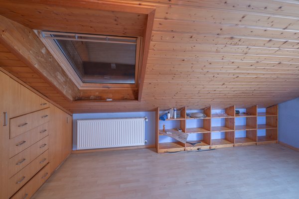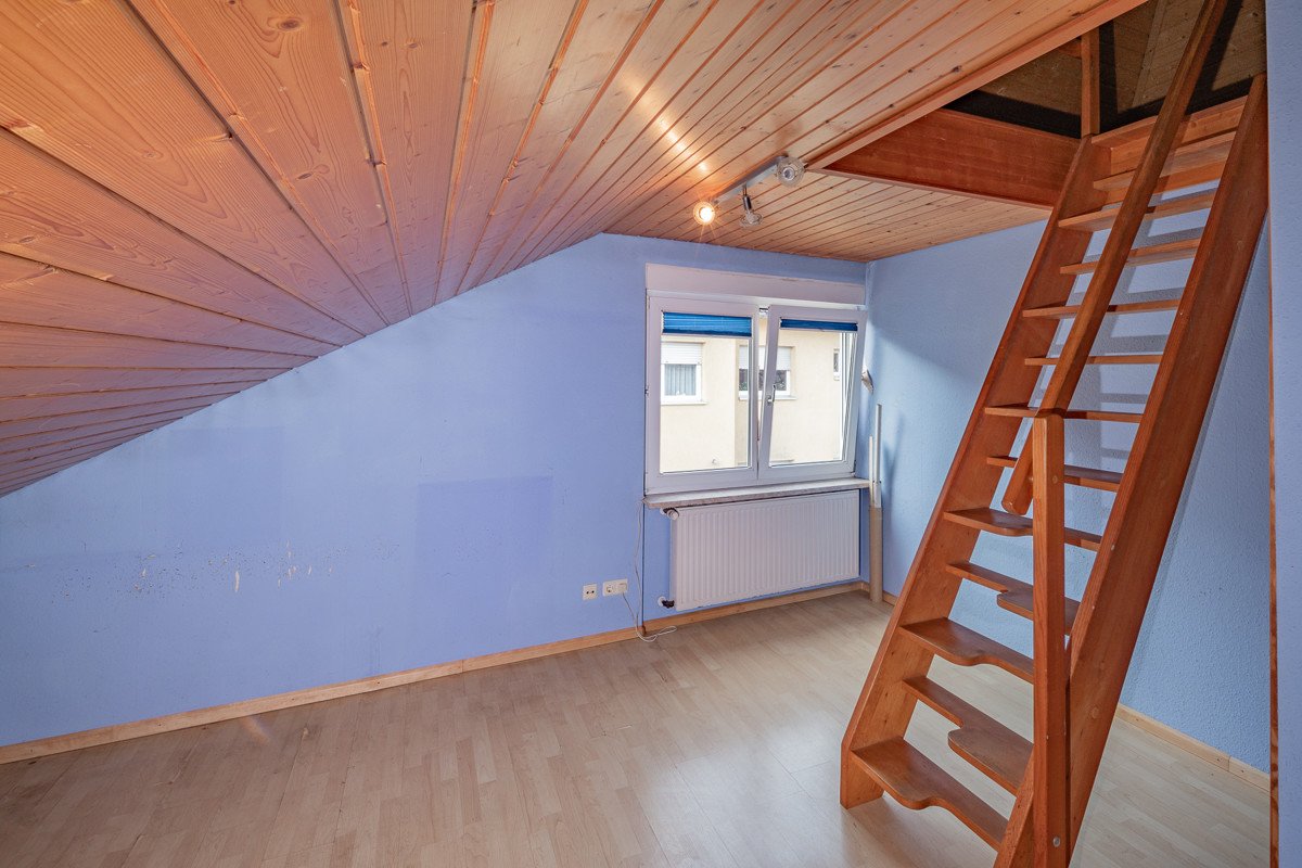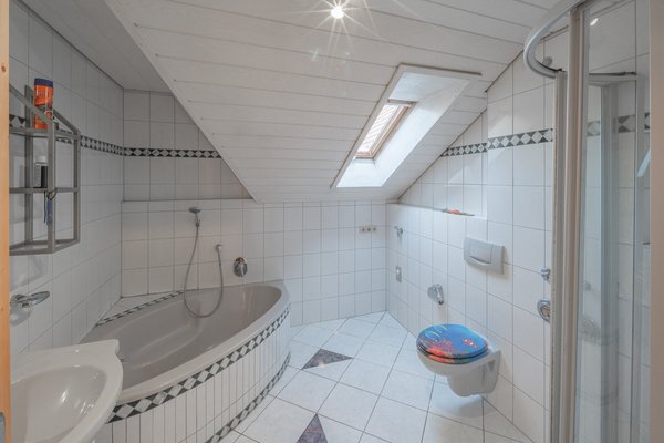 Im Erdgeschoss befinden sich eine große Wohnküche mit Ess- und Wohnbereich sowie ein zusätzliches Gäste-WC, im Obergeschoss zwei Zimmer und ein weiteres Zimmer im Dachgeschoss. Das große Bad im Obergeschoss verfügt über Tageslicht und bietet eine Oase der Entspannung. Die Hauptwohnung ist sofort bezugsfertig.