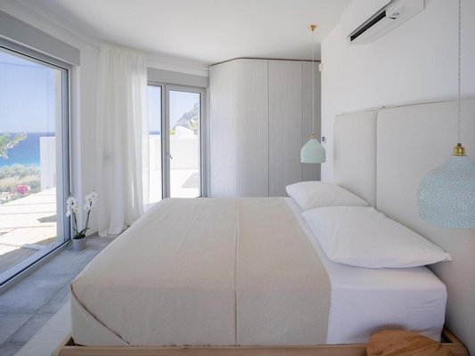 Von jedem Zimmer und Bad der Villa genießen Sie Meerblick. Die voll ausgestattete Küche bietet Platz für 10 Personen. Ein überdachter, an die Villa angrenzender Außenbereich mit Grill lädt zum erfrischenden Frühstück ein. Ein gemütliches Wohnzimmer mit Holzkamin und ein Gästebad mit Dusche stehen zur Verfügung.