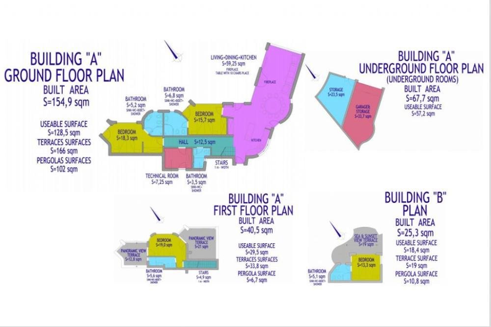 Das Anwesen verfügt über eine bebaute Wohnfläche von 288 m² (233 m² Nettoinnenfläche) sowie zusätzlich 219 m² möblierte und dekorierte Terrassen. Der 11 m lange (38 m²) Infinity-Pool mit Blick auf die Bucht ist mit bequemen Sonnenliegen und einer 10 m² großen Feuerstelle am Pool für unvergessliche Abende ausgestattet. Die Getränkebar befindet sich in unmittelbarer Nähe.