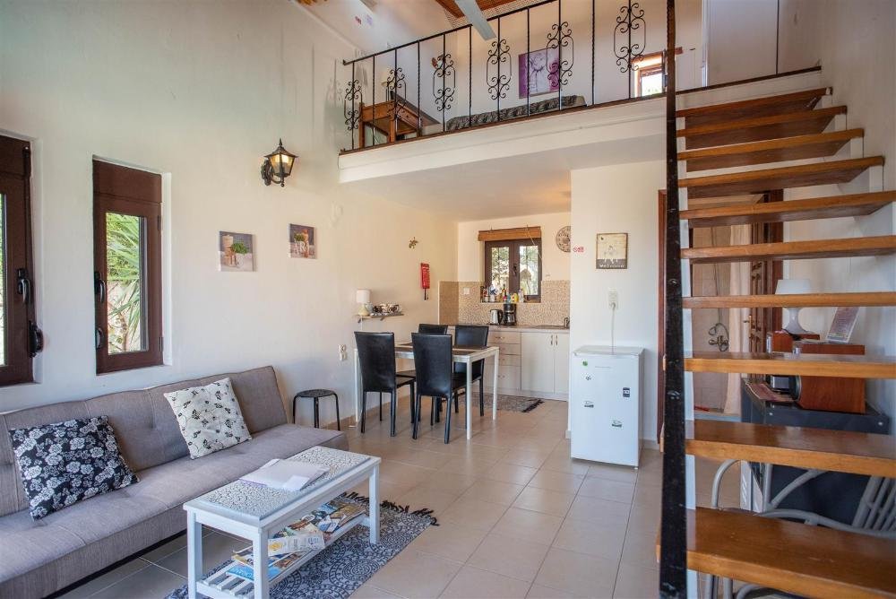 Alle 3 Studio-Apartments verfügen über eine kleine voll ausgestattete Küche und einen Wohnbereich mit einem Doppelschlafsofa und einem Badezimmer. Es gibt auch ein Zwischengeschoss mit einem Doppelbett und einem freistehenden Kleiderschrank.