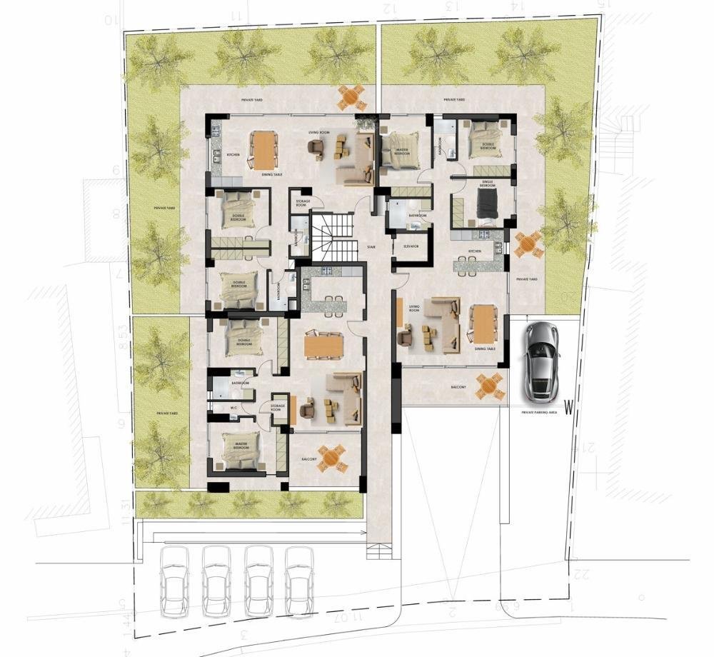 • Private Parkplätze • Private Lagerräume • Garten • Alarmanlage • VRF-Heiz- und Kühlsystem