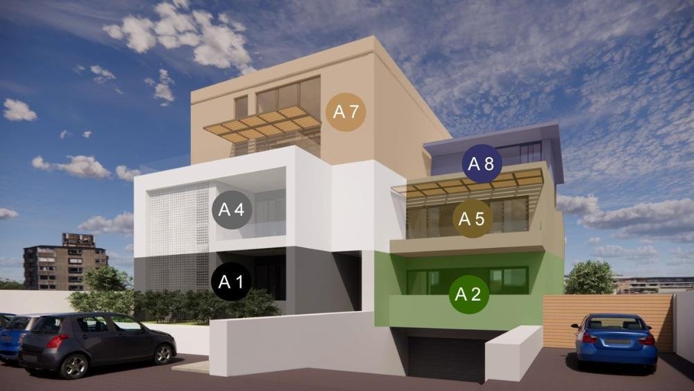 Wir präsentieren eine erstklassige Entwicklung von Designer-Apartments zum Verkauf in Chania. Der Bau dieses Komplexes mit 9 Apartments begann im Sommer 2024, Fertigstellung ist Mitte 2026 geplant. Er liegt ideal, nur 3 Minuten vom Stadtzentrum von