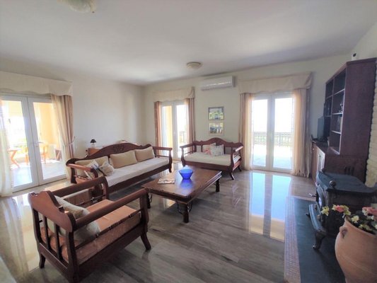 Dies ist eine fantastische Villa zum Verkauf in Rethimno, Kreta, im Dorf Atsipopoulo, die einen immer ungehinderten 360-Grad-Blick auf das Meer, die Berge und die Landschaft bietet. Das Anwesen verfügt über eine Gesamtwohnfläche von 395 m² auf einem