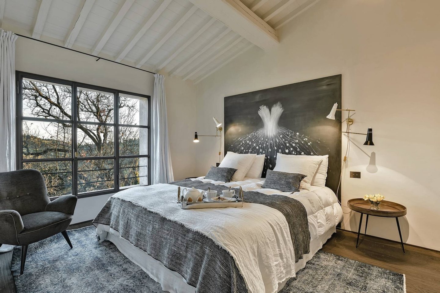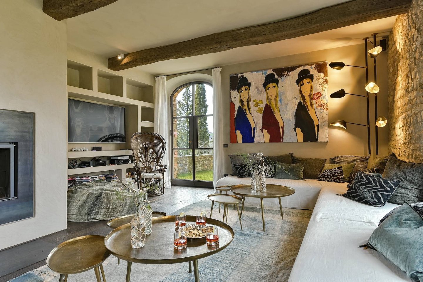 Wunderschön auf einem Hügel gelegen, nur eine halbe Stunde von Florenz entfernt, bietet dieses außergewöhnliche mittelalterliche Anwesen einen endlosen Blick auf Weinberge und Olivenhaine bis zu den fernen Alpen und das Schloss Santa Maria im Hintergrund. Die geschmackvoll mit hellen Farben eingerichtete Villa besticht durch große Fenster und ist ein wahres Paradies nur wenige Kilometer von Florenz entfernt. Sie wurde makellos restauriert, mit akribischer Aufmerksamkeit für jedes Detail und allen Annehmlichkeiten eines dezenten modernen Luxus.