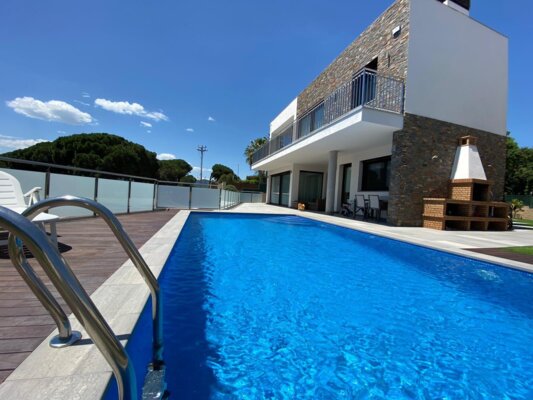 Moderne Villa zum Verkauf mit Panoramablick auf das Meer und nur wenige Gehminuten von den Stränden von Sant Pol, La Conca und S'Agaró in der luxuriösesten Stadt S'agaro und der Gemeinde Sant Feliu de Guixols entfernt. Die Villa befindet sich auf einem Grundstück von 600m2. Die Wohnfläche beträgt 500 m2. Das Erdgeschoss besteht aus einem geräumigen Wohnzimmer, einer Treppe, die mit dem ersten Stock verbunden ist, einem Wohn-Esszimmer mit Zugang zur Terrasse und zum Pool, einer voll ausgestatteten modernen Küche mit Zugang zum Garten und einem Schlafzimmer mit Bad. Im ersten Stock befinden sich drei sehr geräumige Schlafzimmer, von denen eines eine Suite ist, die sich auf eine Terrasse mit atemberaubendem Blick auf Sant Feliu de Guíxols öffnet. Im dritten Stock befindet sich eine Panoramaterrasse mit Blick auf das Meer und die Stadt, auf der Sie sich ausruhen und entspannen können. Im Untergeschoss gibt es eine Garage für mehrere Autos, eine russische Sauna mit Hockern, ein Duschbad, einen Ruhebereich und einen Fitnessraum. Alle Materialien sind von sehr hoher Qualität. Schwimmbad im Garten. Heizung mit Erdgas.