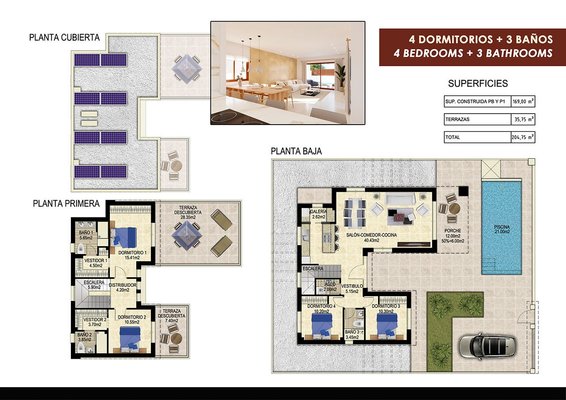 Diese modernen Villen verfügen über eine konstruierte Fläche von ca. 205 m² (inklusive Terrassen) mit