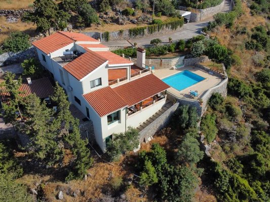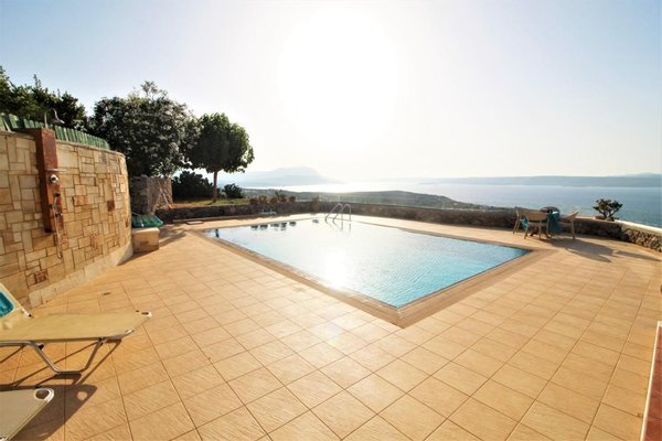 Eine erstaunliche Luxusvilla auf einem Hügel mit Panoramablick über die Bucht von Souda und die Ägäis, Teil von Apokoronas in Chania.