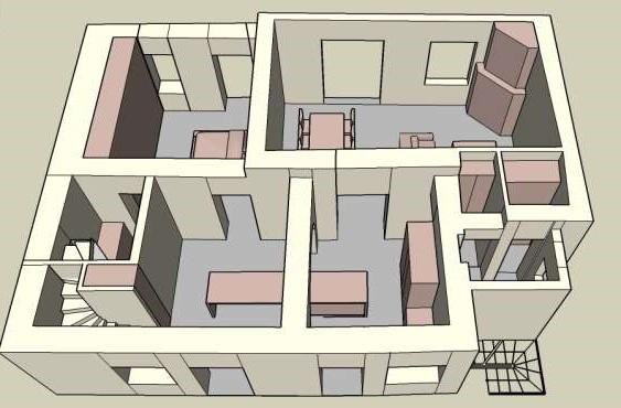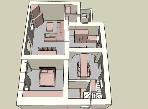 Nach den Plänen (die befolgt werden müssen!) besteht der Hauptwohnsitz aus zwei Ebenen. Im Erdgeschoss befindet sich ein großes Wohnzimmer - Esszimmer, eine separate Küche, ein Schlafzimmer mit eigenem Bad und ein WC.