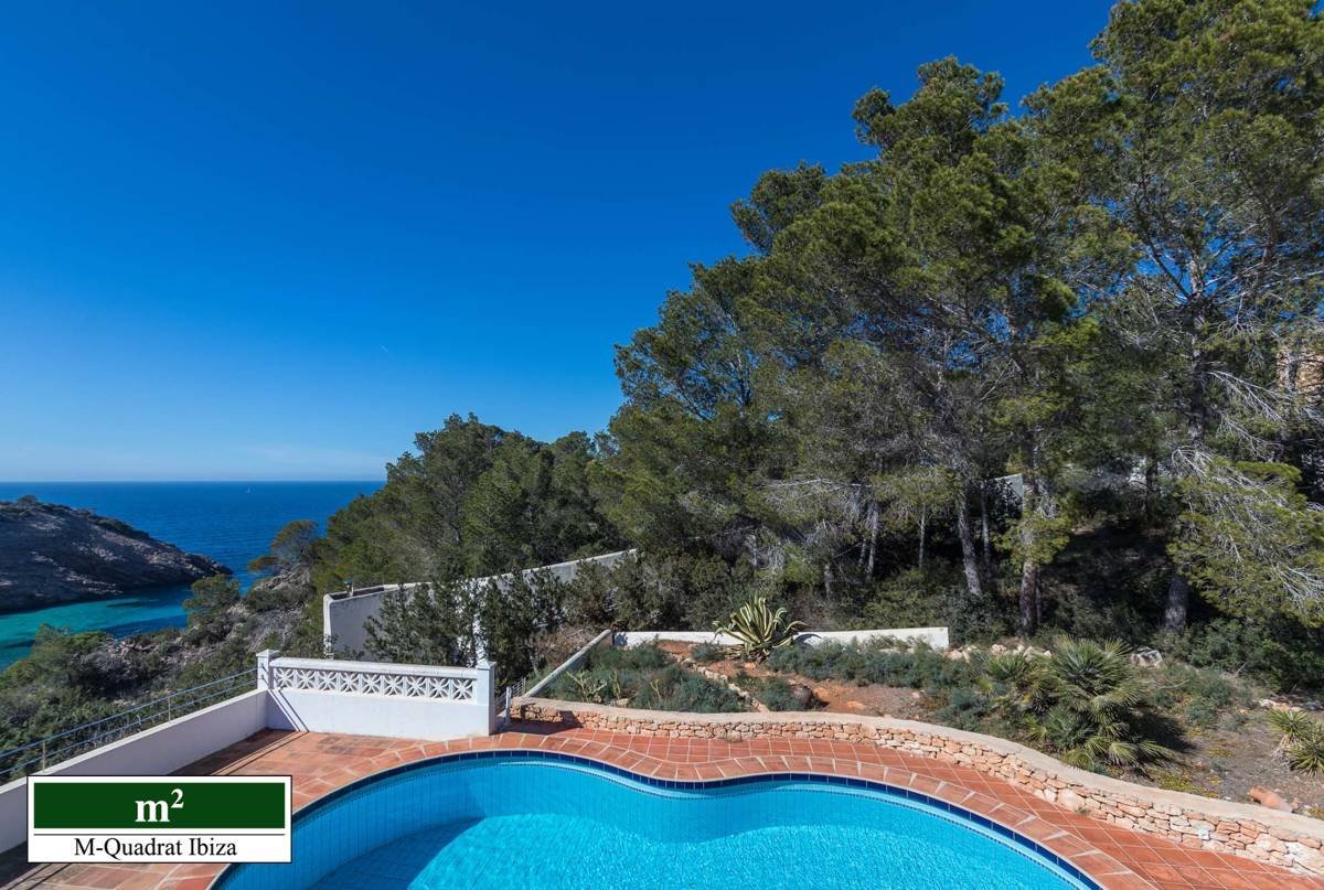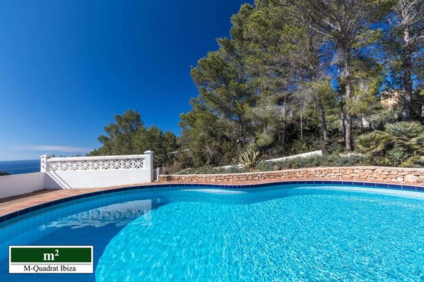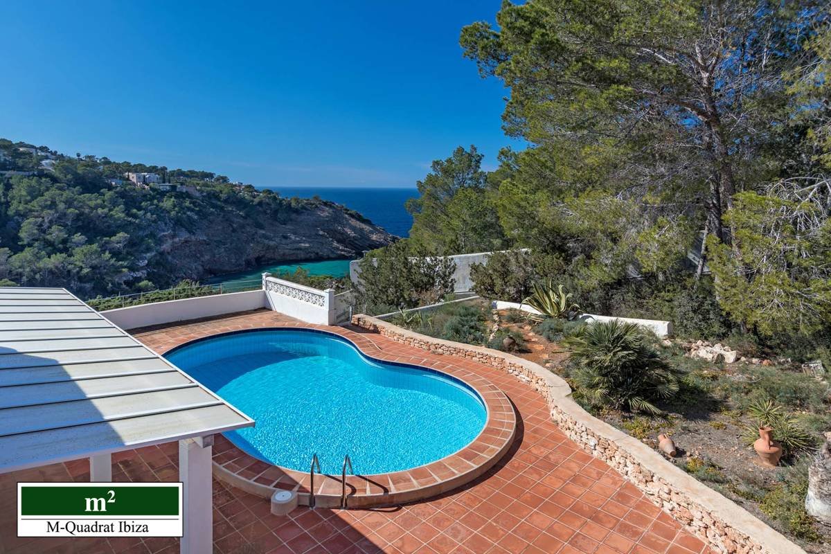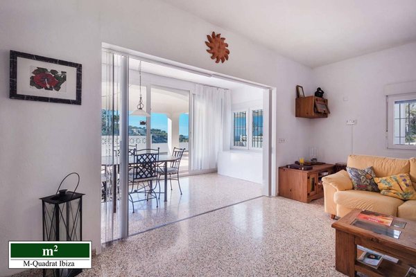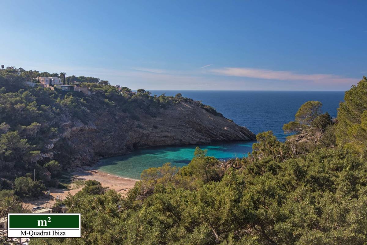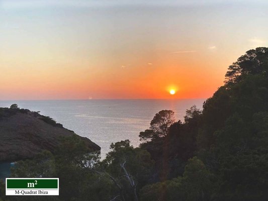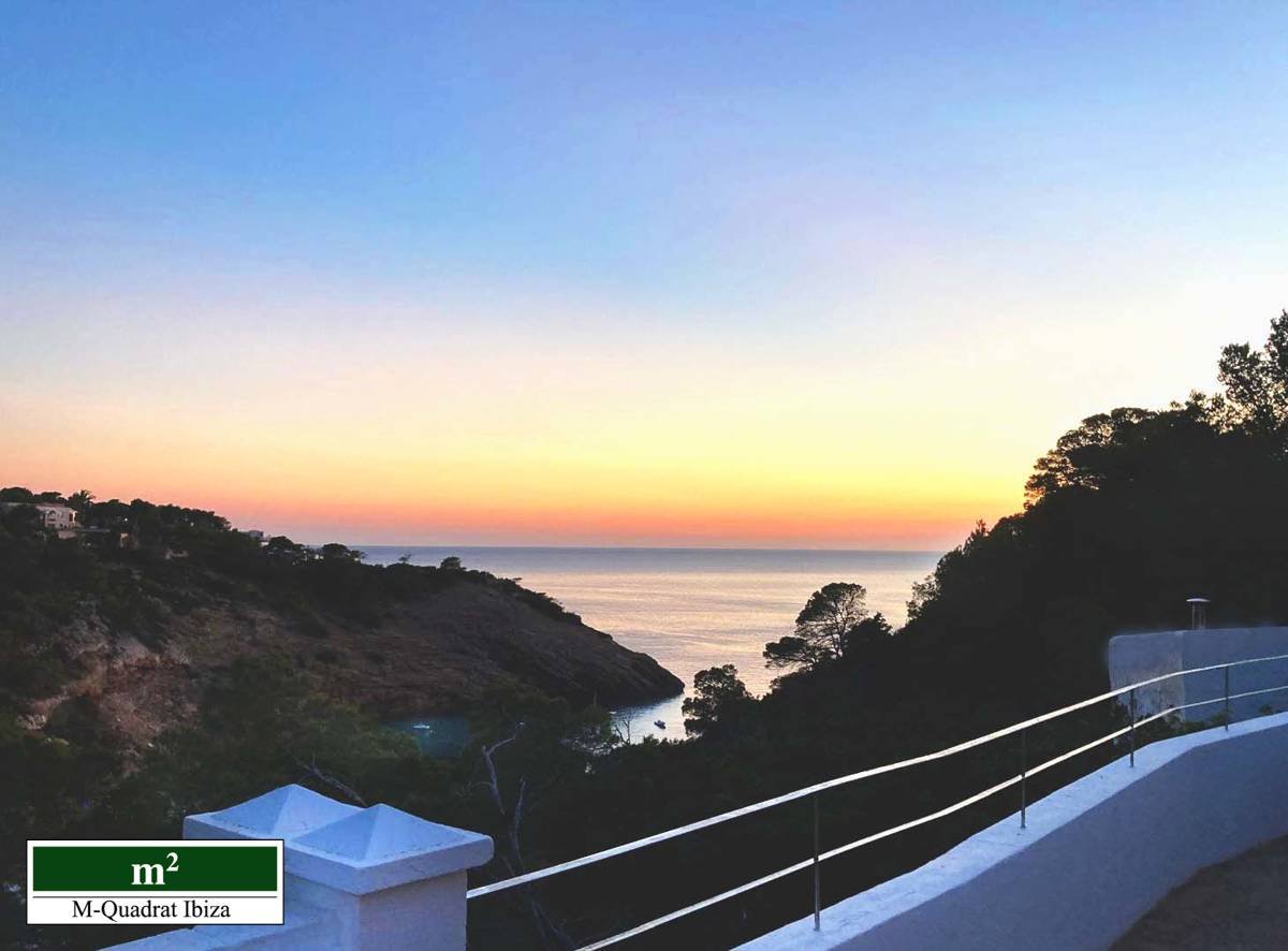 Diese charmante Villa begeistert vor allem durch ihre einzigartige Lage an der Westküste Ibizas. Erhöht über der malerischen Cala Moli gelegen, eröffnet sich von hier ein freier Panoramablick auf das Meer und die paradiesische Bucht.