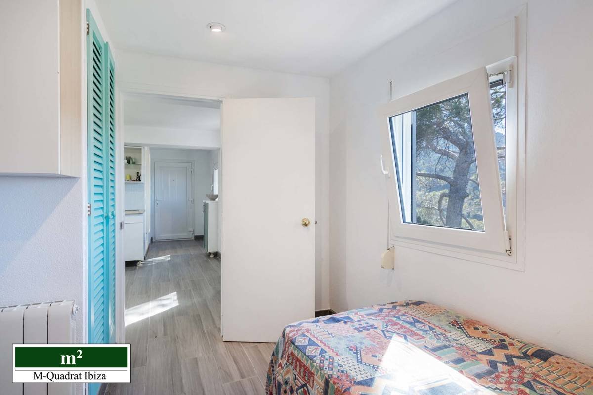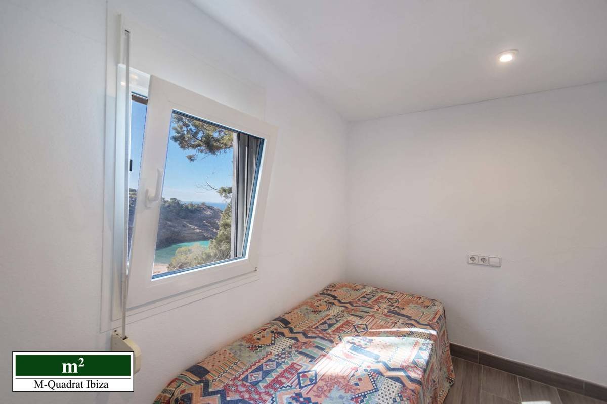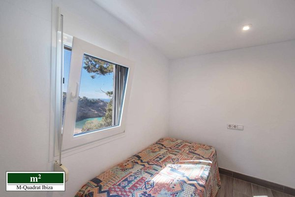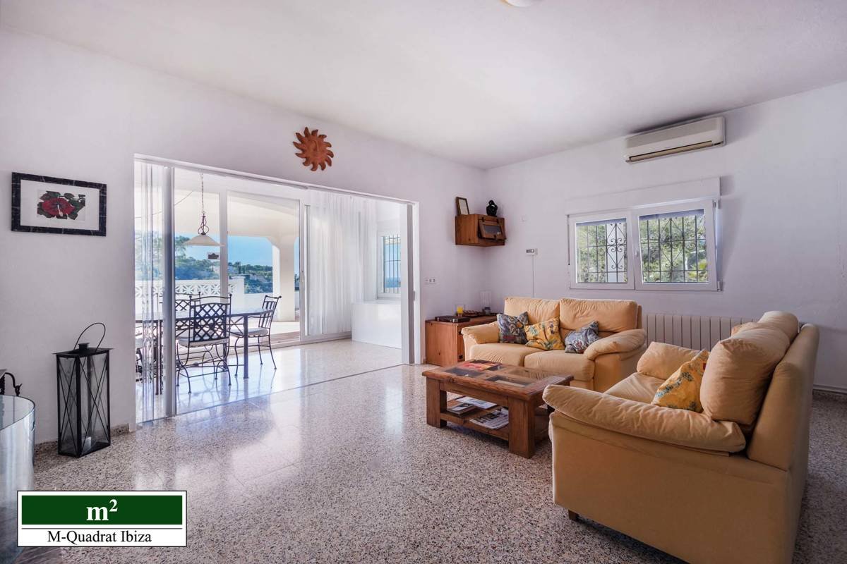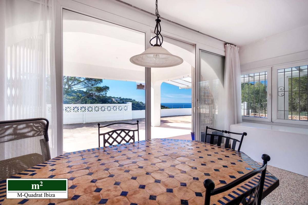 Diese charmante Villa begeistert vor allem durch ihre einzigartige Lage an der Westküste Ibizas. Erhöht über der malerischen Cala Moli gelegen, eröffnet sich von hier ein freier Panoramablick auf das Meer und die paradiesische Bucht.