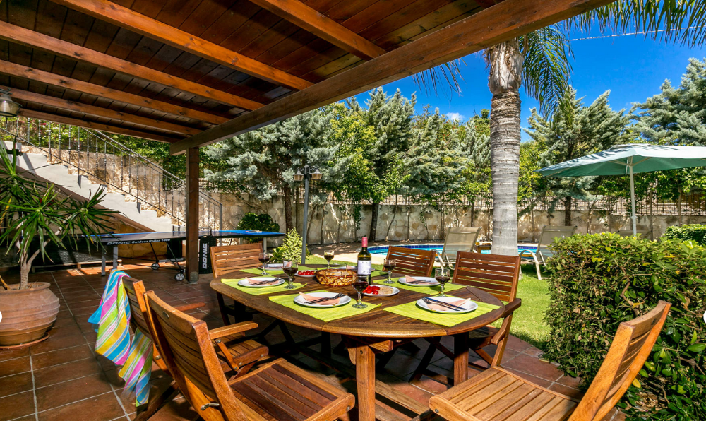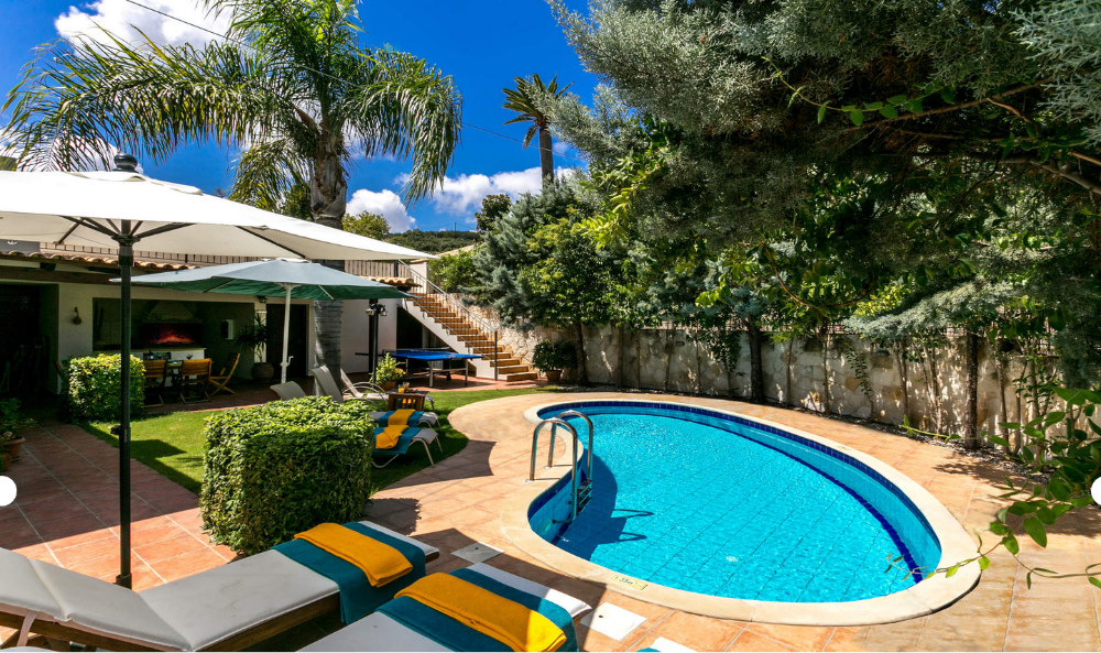 Der Außenbereich dieser Villa ist eine wunderbare, entspannende Oase. Viel Grün umgibt den Poolbereich und bietet zusätzliche Privatsphäre. Es gibt Sonnenliegen, die sich perfekt zum Entspannen bei einem kühlen Getränk eignen, und einen wunderschön angelegten Bereich mit Grill und Küche neben dem Essbereich im Freien. Es verfügt auch über einen Abstellraum von ca. 30 m². Es