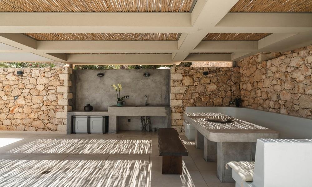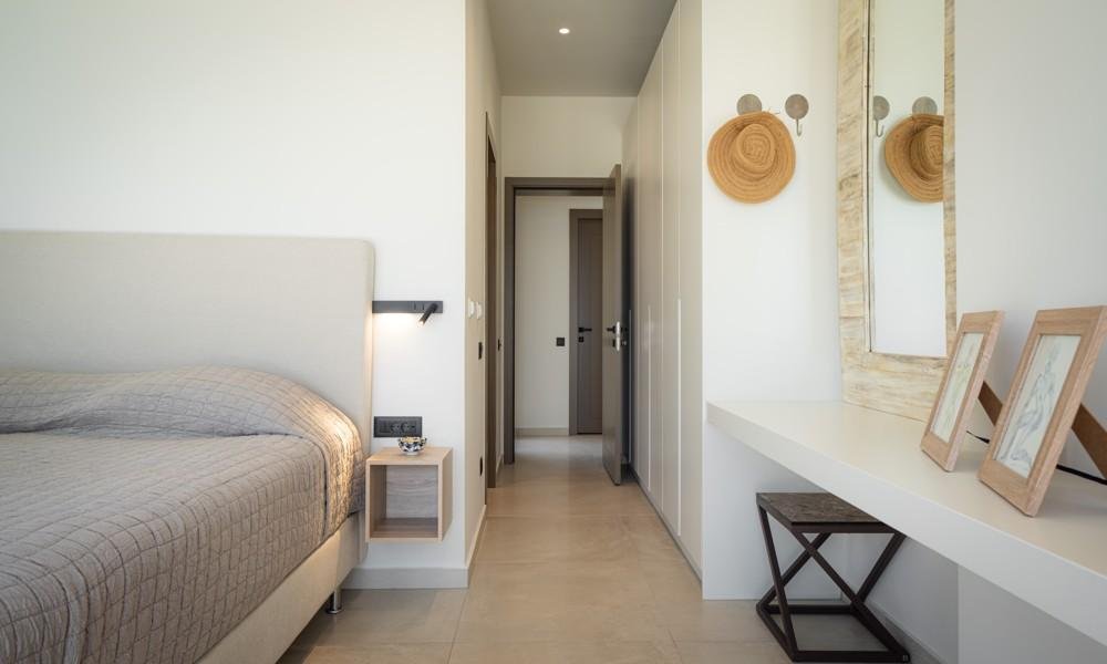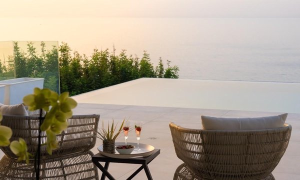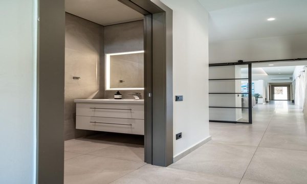 Ein bemerkenswertes Merkmal dieser Villa ist, dass Sie daneben einen 30 m² großen, aus Stein gebauten Weinkeller mit einzigartigem Design und Geschmack finden, der in einer unterirdischen Höhle untergebracht ist. Draußen bietet der große Infinity-Salzwasserpool mit Sonnenliegen und Sonnenschirmen den perfekten Platz zum Entspannen, während Sie den spektakulären und ungehinderten Blick auf das Meer genießen. Optional kann er außerhalb der Sommersaison genutzt werden, da sein Wärmepumpensystem ihn ideal für den Winter macht. Natürlich tragen auch der Grillbereich mit großem Esstisch und Küche sowie der vollständig angelegte Garten zu seiner Attraktivität bei. Schließlich machen Photovoltaik- und Sonnenkollektoren das Haus in Bezug auf Strom und Warmwasser autark.