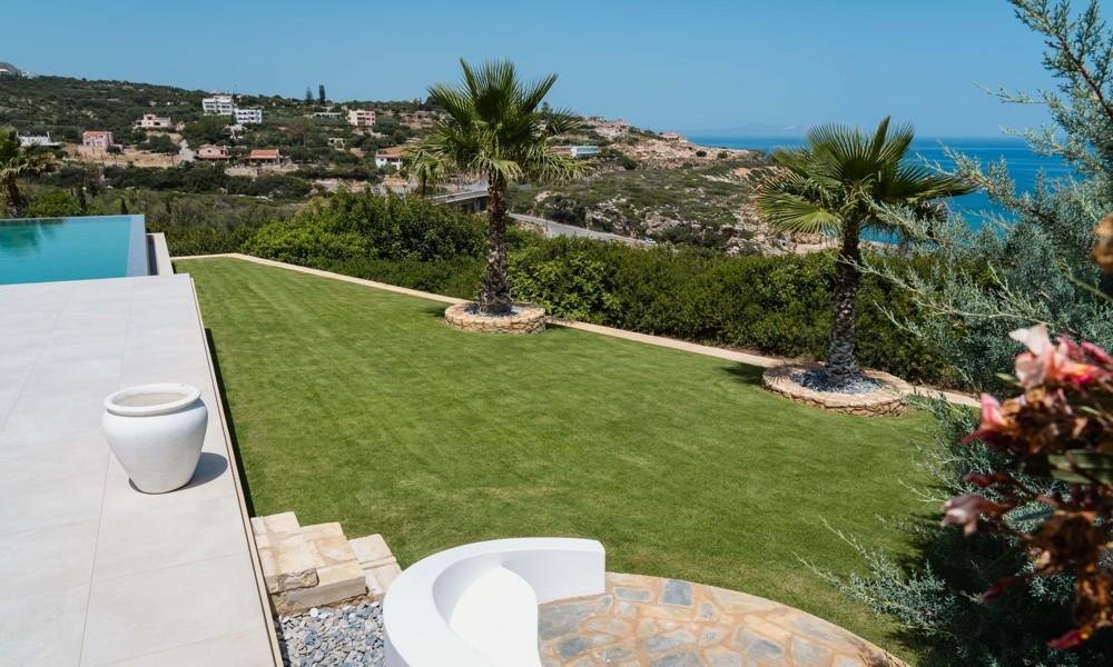 Die Residenz ist von großen Gartenflächen, großen überdachten Terrassen mit herrlichem Blick auf das Meer und direktem Zugang zum beheizten Salzwasserpool umgeben. Beim Betreten dieses vollständig eingezäunten Grundstücks sehen Sie einen überdachten Parkplatz mit 2 Stellplätzen und einen kleinen, hübschen Garten, der ideal ist, um lokales Gemüse anzubauen und den Geschmack kretischer Produkte zu erleben.