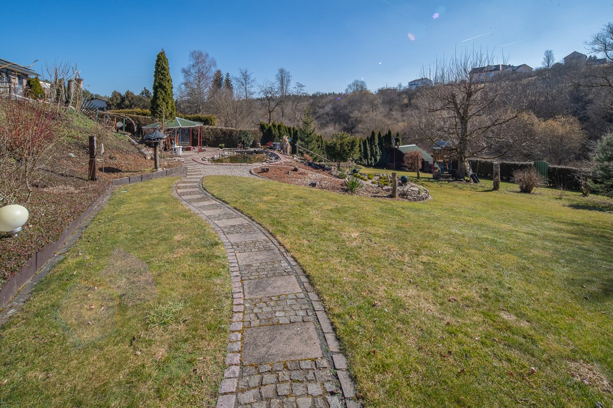 Dieses charmante Einfamilienhaus mit Einliegerwohnung besticht durch seine großzügige Wohnfläche von ca. 156,87 m² und befindet sich auf einem beeindruckenden Grundstück von ca. 1.081 m² mit einem Zierteich.