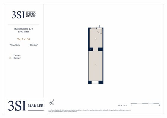 Bei der gegenständlichen Einheit handelt es um eine unsanierte 1-Zimmer Wohnung mit knapp ca. 21,86 m² im 1.Obergeschoss.