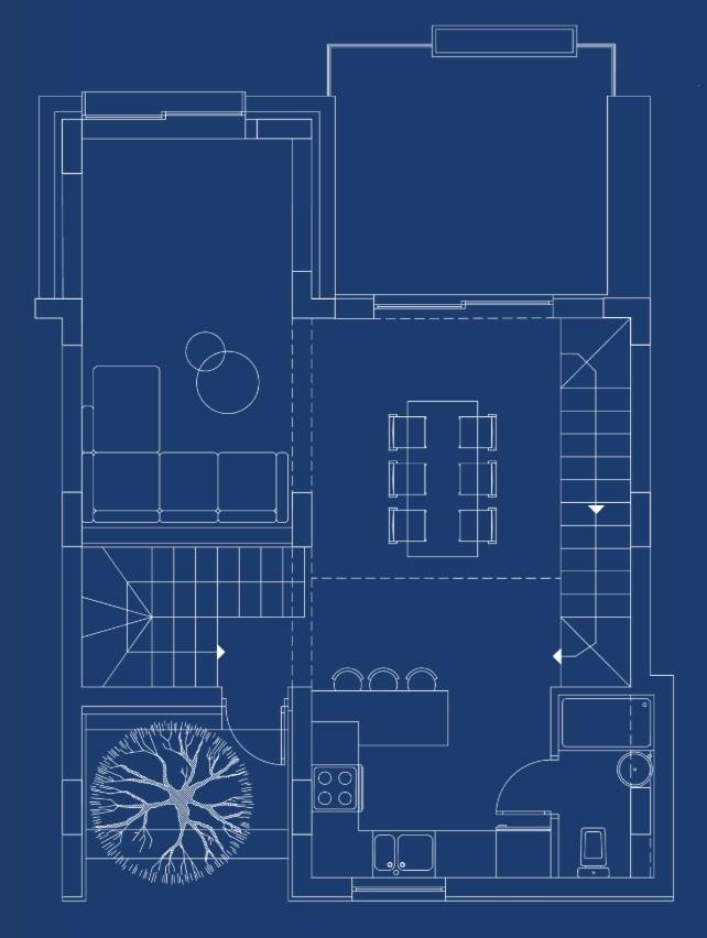 Im Erdgeschoss befinden sich drei Schlafzimmer, eines davon ist das Hauptschlafzimmer mit eigenem Bad. Die restlichen zwei Gästezimmer teilen sich das zweite Badezimmer.