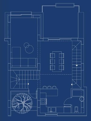 Wenn Sie im ersten Stock ankommen, finden Sie ein schönes Wohnzimmer, das zu 2 privaten Terrassen führt. Außerdem gibt es eine offene Küche und ein WC. Auf dieser Ebene befindet sich auch die schwebende Treppe, die zum Zwischengeschoss mit seiner atemberaubenden Aussicht und der fantastischen Dachterrasse führt. Villa 1 und 5 haben ein Fenster mit Sitzgelegenheit im Wohnzimmer.