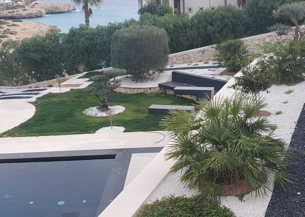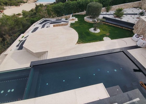 High End Neubau - Villa mit direkten Strandzugang und unverbaubaren Meerblick in Cala Murada. 4 Schlafzimmer mit Bad en Suite, großzügige Terrassen, ein traumhafter mediterraner Garten mit moderner Beleuchtung freut sich auf ihre Eigentümer. Die moderne Villa mit top ausgestatteter Küche, einem Aufzug, Domotic und vielen weiteren Details besticht durch große Fensterfronten mit unverbaubaren BIick aufs Meer von fast allen Räumen. Die hochwertigen Einbauten - unter anderem ein Salzwasser, Aquarium als Raumteiler lassen keine Wünsche offen. Der 15 Meter lange Infinity Pool mit Whirlpool liegt inmitten von Terrassen und einem mediterranen Garten.