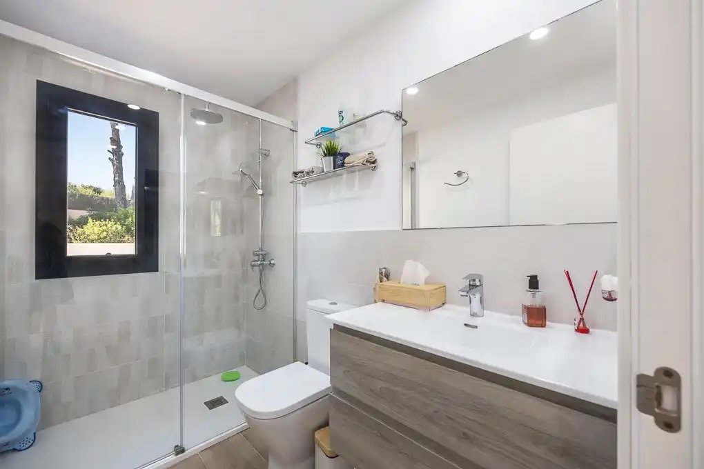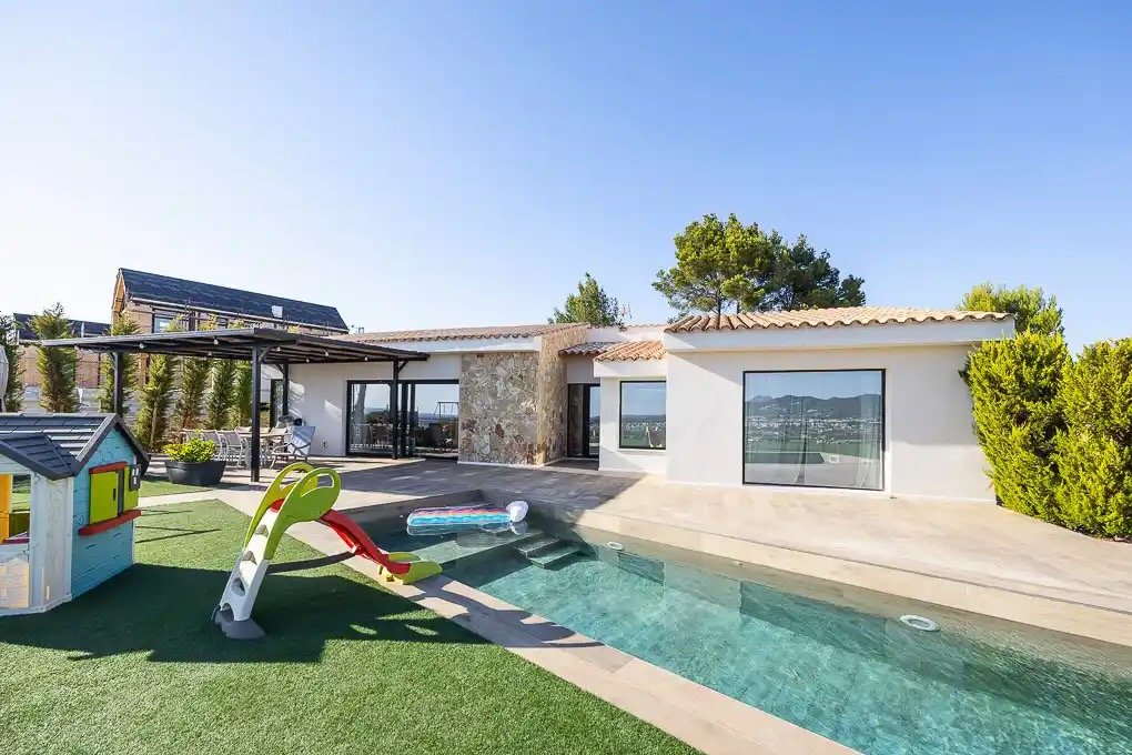 Die 2022 fertiggestellte Villa hat einen großen und hellen Wohn-Essbereich mit einer Küche im amerikanischen Stil, 3 Schlafzimmer und zwei Badezimmer, eins davon en Suite. Die Außenflächen mit Salzwasserpool sind pflegeleicht im mediterranen Stil angelegt und die vielen Terrassen bieten viel Platz für geselliges Zusammensein mit Freunden und Familie im Freien.