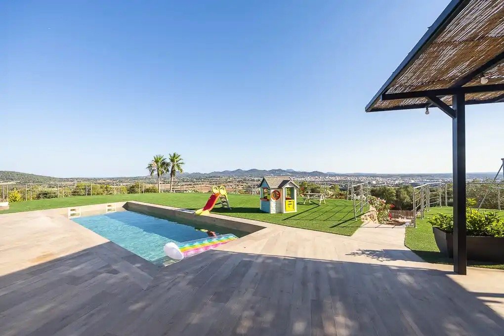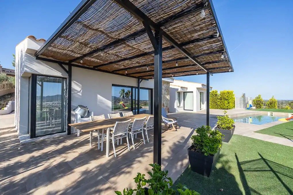 Diese charmante Neubau-Villa in einer Wohnsiedlung bei Manacor bietet Ihnen alles, was Sie sich von einem mediterranen Lebensstil wünschen: Einen fantastischer Panoramablick über die Landschaft, Manacor und bis hin zum Meer, eine ruhige und doch