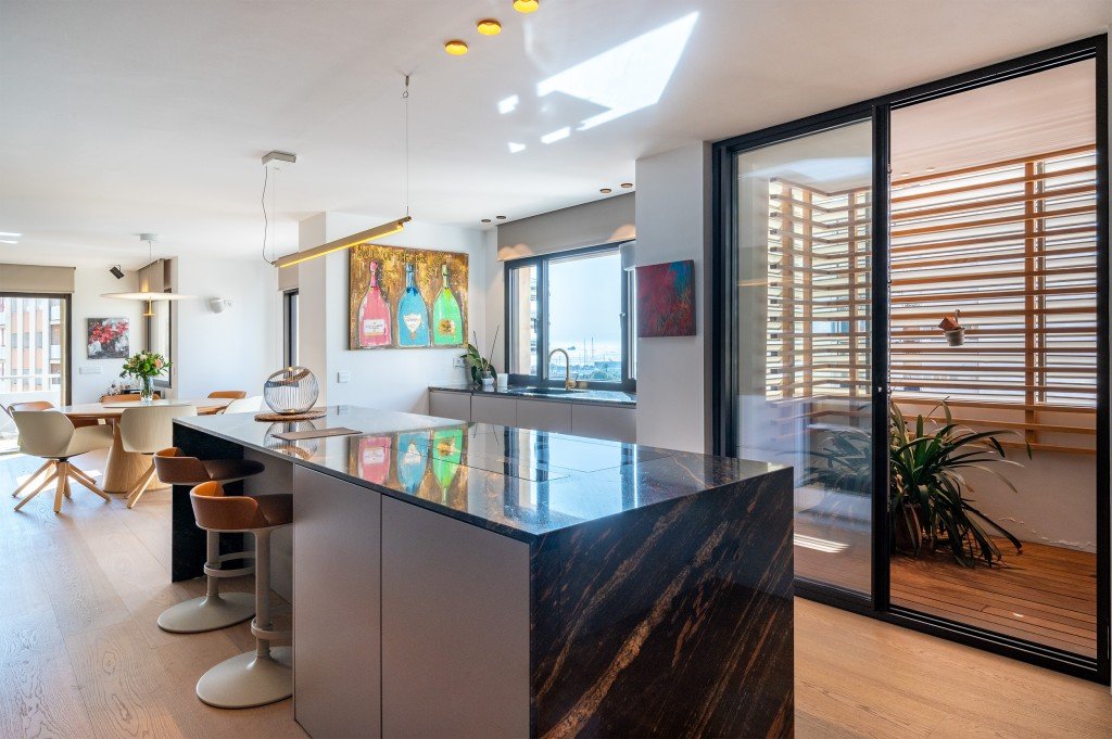 Vollständig renoviert, mit luxuriösen Materialien und Oberflächen. Moderne Innenarchitektur und Gestaltung. Die Wohnung ist offen und hell mit Blick auf Palmas Hafen.
