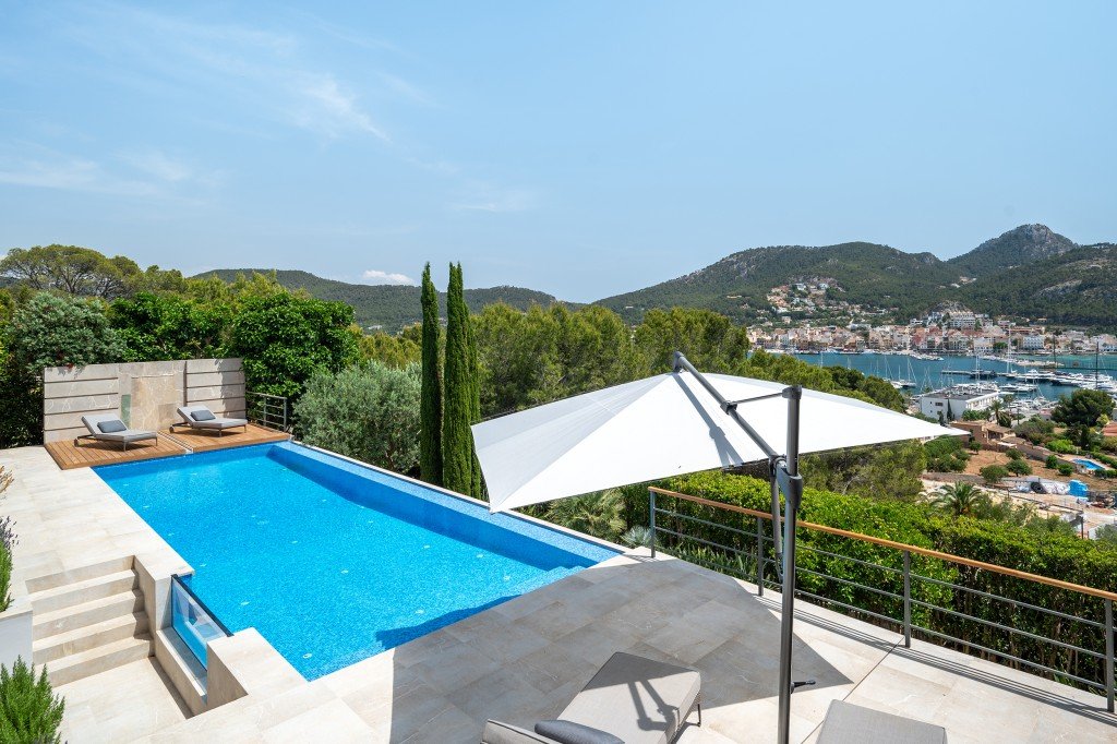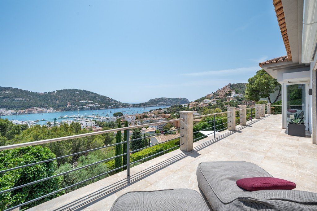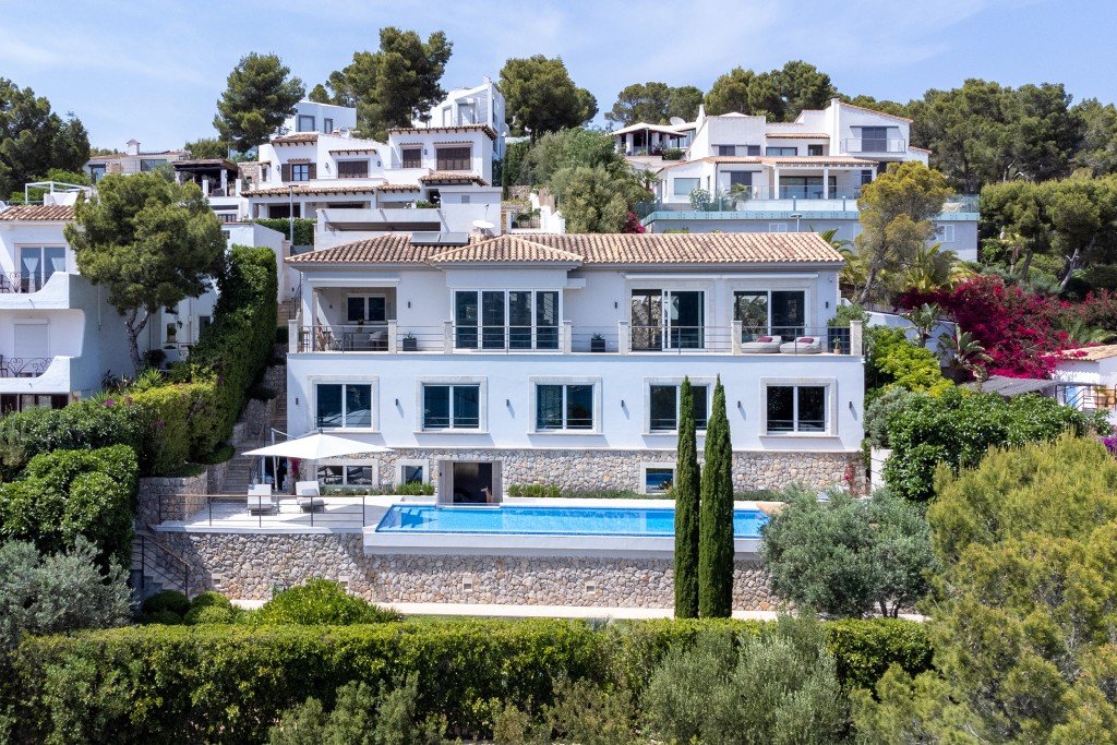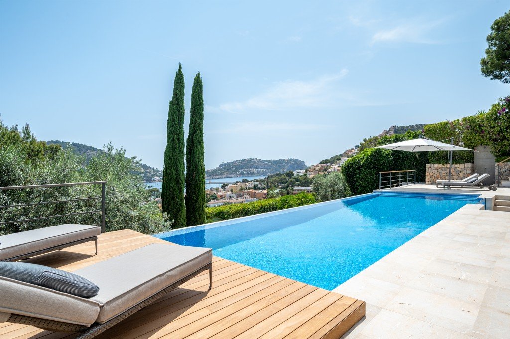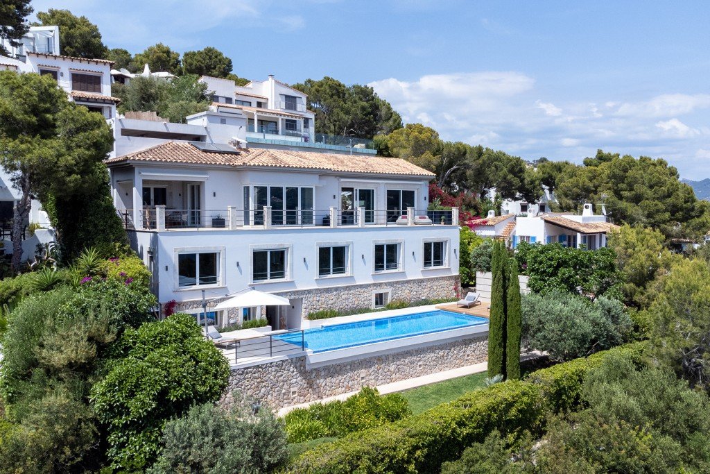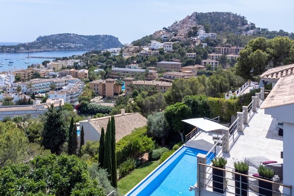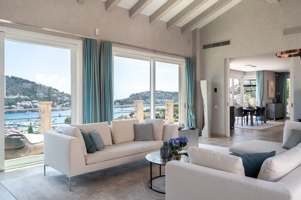 Einmaliges Anwesen mit vollem Meerblick in Puerto de Andratx. Die elegante Villa wurde komplett renoviert und modernisiert.