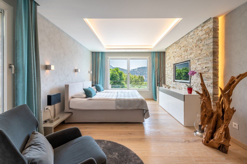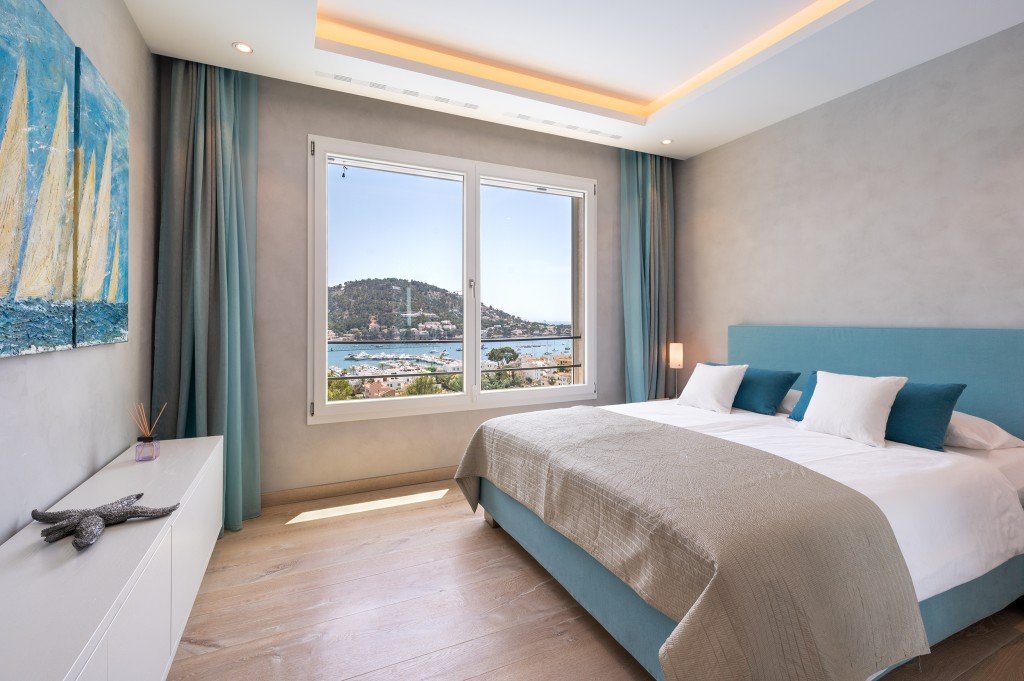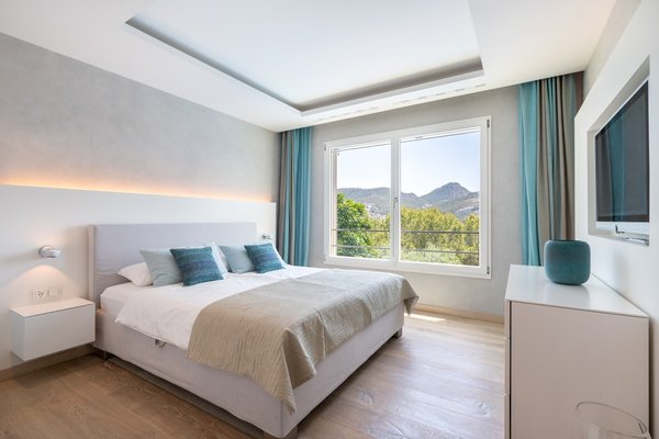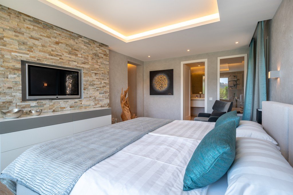 Auf der nächsten Ebene befinden sich 4 Schlafzimmer - 2 mit Bad en suite - mit Meerblick und hochwertigen Einbauten.