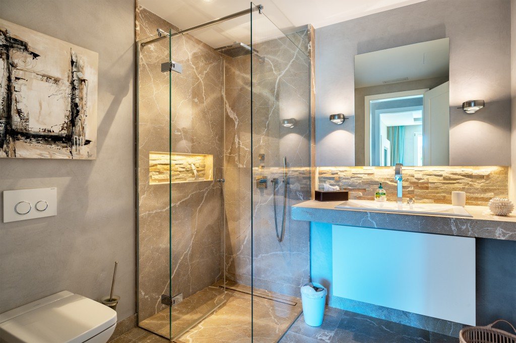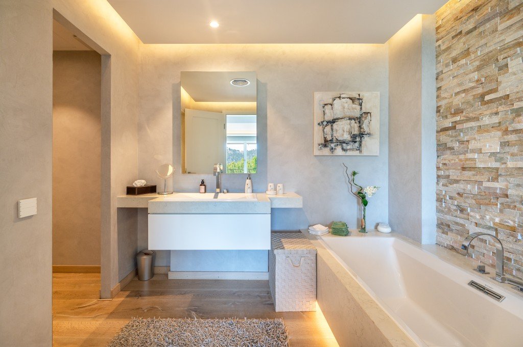 Die Ausstattung ist elegant und hochwertig - es wurde nur mit besten Marken und Materialien gearbeitet. Die Villa verfügt über fast 400m2 reine Wohnfläche verteilt auf 3 Etagen.