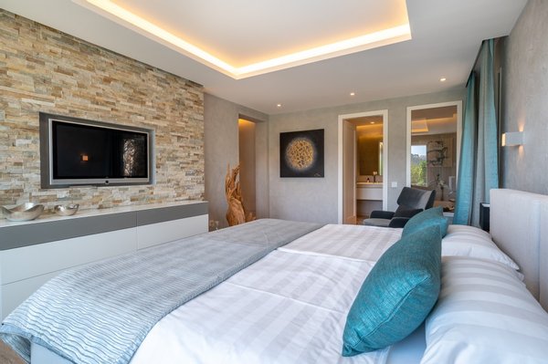 Vorbei an einem weiteren Schlafzimmer gelangt man auf die traumhafte und private Sonnenterrasse mit Infintiy Pool.