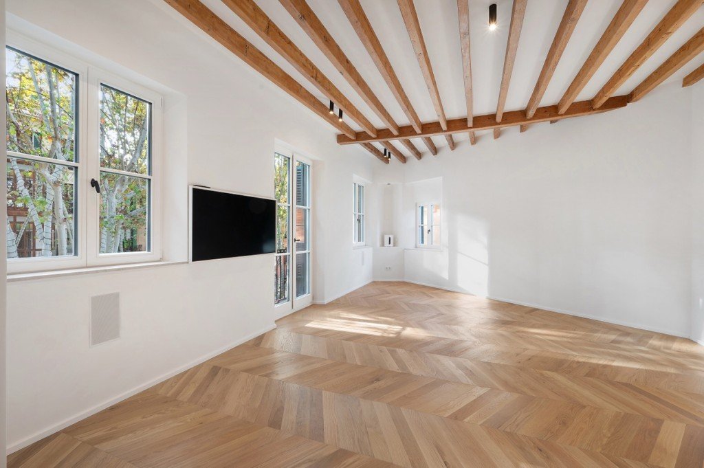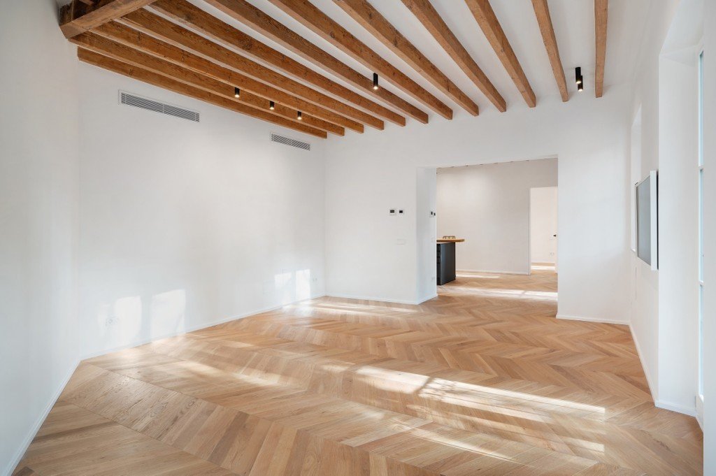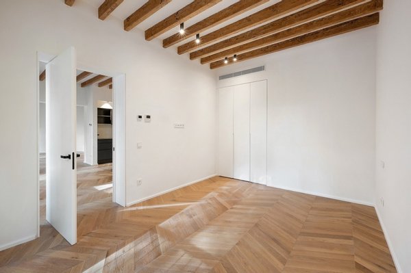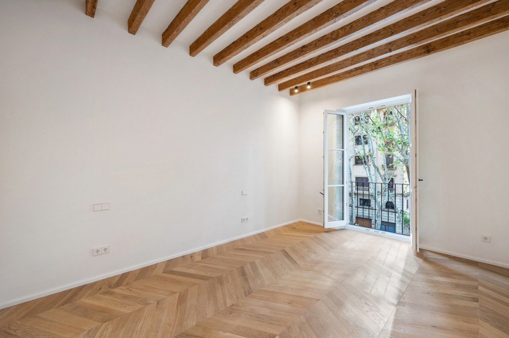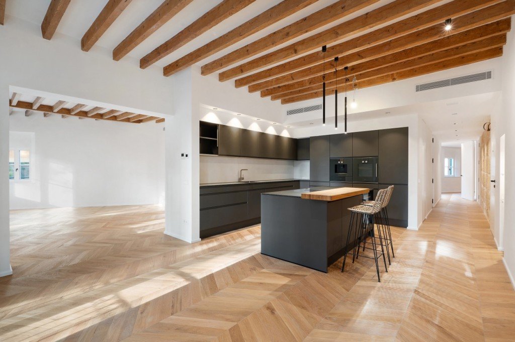 Erleben Sie urbanes Wohnen auf höchstem Niveau: Diese exquisite Altbauwohnung in Palma wurde mit viel Liebe zum Detail und unter Verwendung der besten Materialien vollständig renoviert. Die charakteristischen Mares-Steinwände und die restaurierten Holzdeckenbalken wurden stilvoll in Szene gesetzt, während das edle Fischgrätenparkett aus Eichenholz dem Raum eine zeitlose Eleganz verleiht.