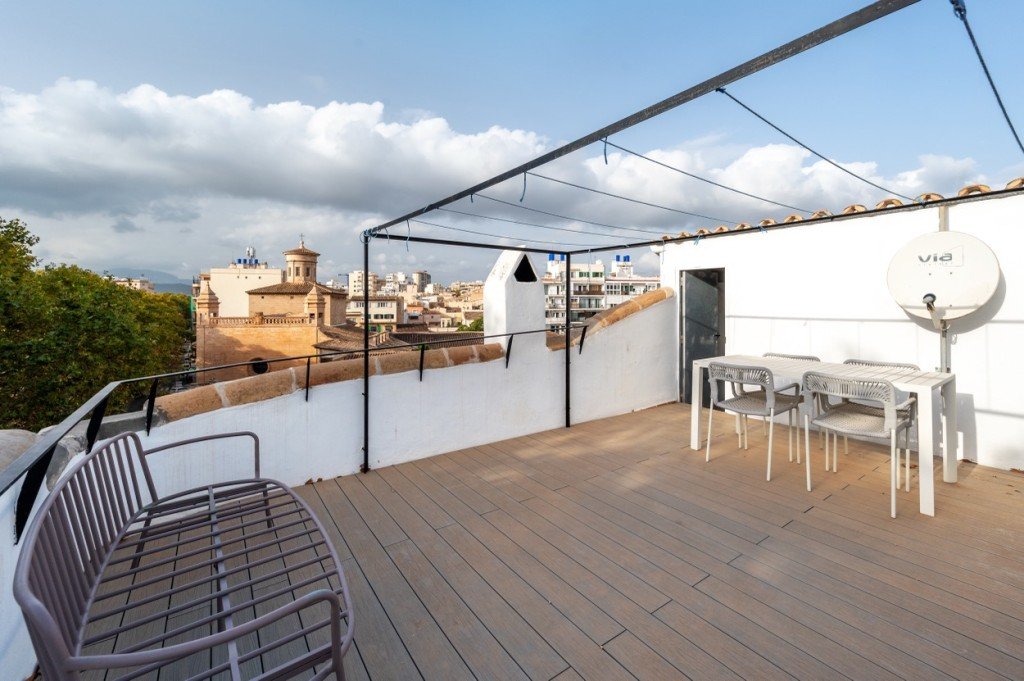 Ein Highlight für Sonnenliebhaber ist die gemeinschaftliche Dachterrasse, von der aus Sie einen atemberaubenden Blick über die Baumkronen der La Rambla und die Dächer Palmas genießen können.