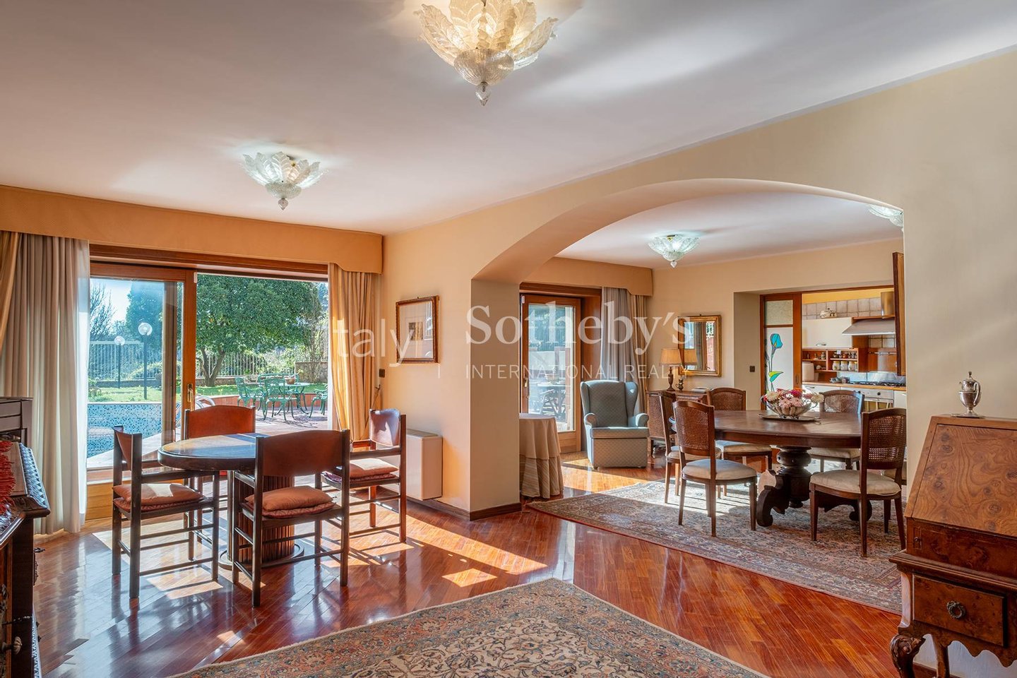 Die in den 1970er Jahren erbaute Villa hat ihren ursprünglichen Charme bewahrt und vereint Eleganz mit modernem Komfort. Sie erstreckt sich über drei Ebenen mit einer großzügigen Gesamtfläche und einer mehrstöckigen Raumaufteilung, die eine optimale Nutzung der Wohnbereiche ermöglicht.
