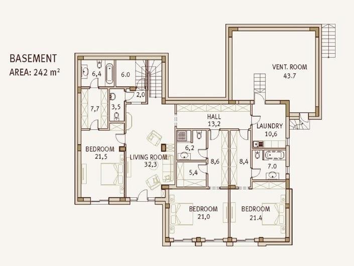 Sie verfügt über ein Wohnzimmer, ein Esszimmer, eine Küche und sechs Schlafzimmer, die alle über ein eigenes Bad und Ankleidezimmer verfügen würden. Es gibt auch ein 40 m² großes Gästezimmer.
