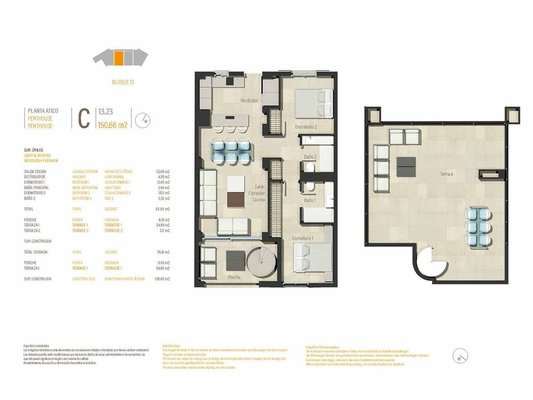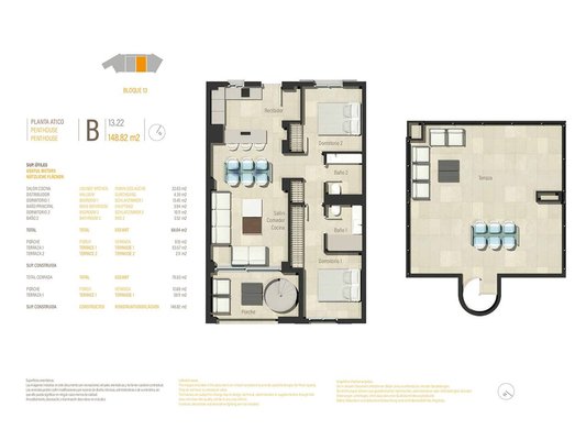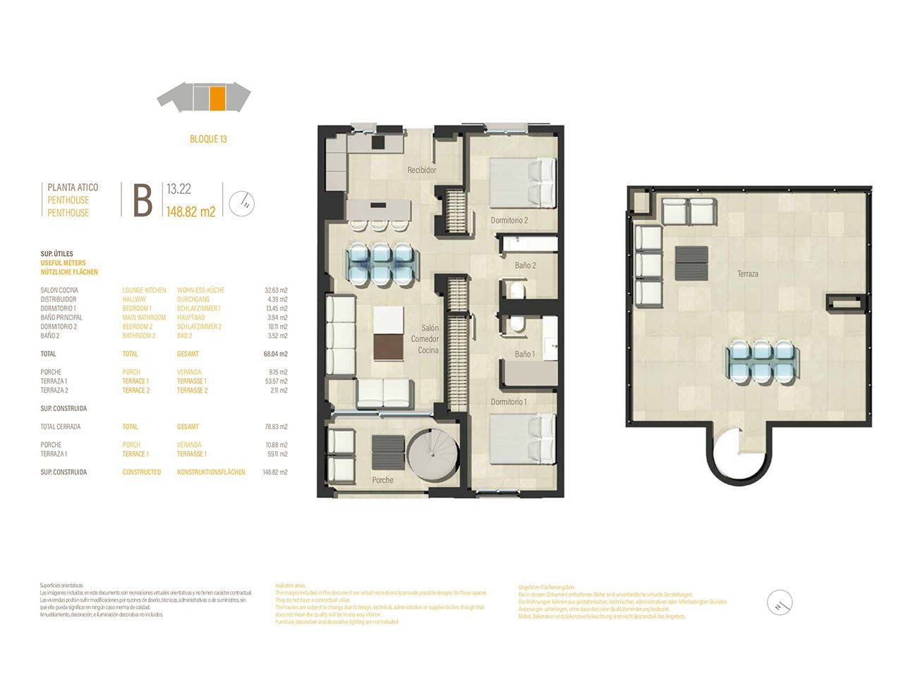 Diese wunderschönen Penthouse-Wohnungen erfüllen höchste Ansprüche und verfügen über eine konstruierte Fläche von 136 m² - 161 m² (verschiedene Modelle, inklusive Terrassen) mit