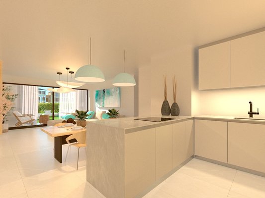 Diese wunderschönen Erdgeschoss-Wohnungen erfüllen höchste Ansprüche und verfügen über eine konstruierte Fläche von 115 m² - 146 m² (verschiedene Modelle, inklusive Terrassen) mit