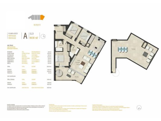Diese wunderschönen Penthouse-Wohnungen erfüllen höchste Ansprüche und verfügen über eine konstruierte Fläche von 168 m² - 224 m² (verschiedene Modelle, inklusive Terrassen) mit