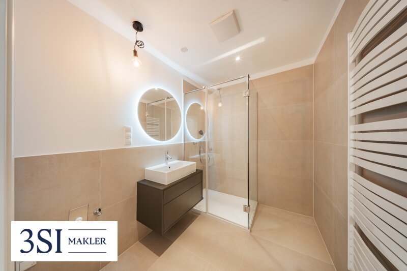 Diese moderne 3-Zimmer-Wohnung überzeugt mit ihrem durchdachten Grundriss zur Gänze. Die Wohnräume sind ost-süd- und westlich ausgerichtet. Vom Vorraum aus lassen sich alle Räume zentral begehen. Die Nassräume sind mit hochwertigem Feinsteinzeug und Markenarmaturen ausgestattet. Das Badezimmer beinhaltet eine moderne Walk-In Dusche, sowie ein Handwaschbecken und einen Waschmaschinenanschluss. Straßenseitig ausgerichtet ist die offene Wohnküche, sowie das kleinere der beiden Schlafzimmer. Das Masterbedroom, mit praktischer Nische für einen Kasten und eigener Loggia zeigt zur Gänze in den absolut ruhigen Innenhof. Von der Loggia aus gelangt man zum praktischen Abstellraum.