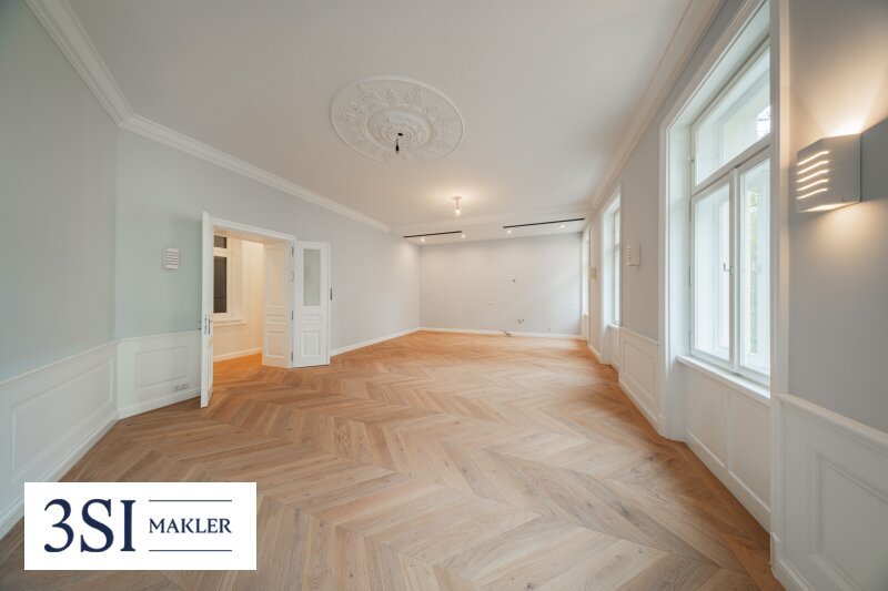 - Französisches Fischgrätparkett, prachtvolle Stuckleisten, traditionelle Kastenfenster mit Laibungen, hohe Türen im Alt-Wien Stil