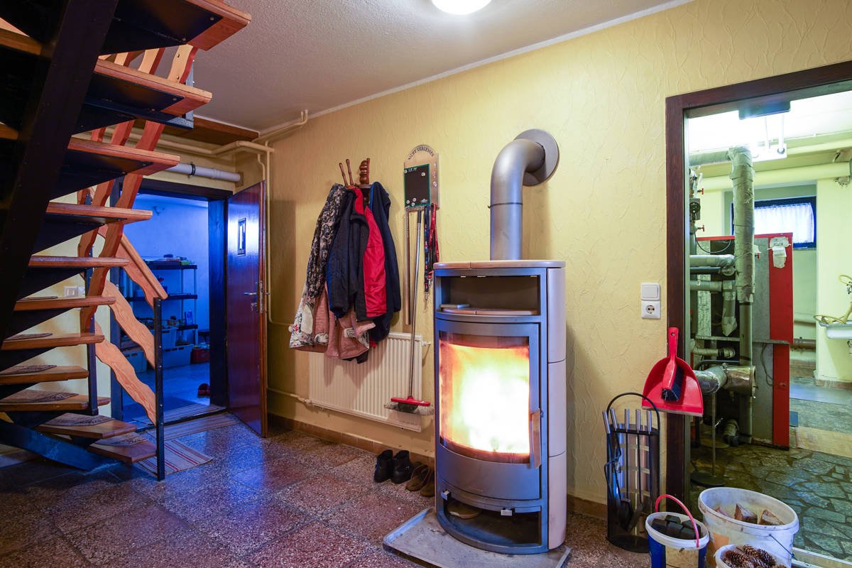 sowie ein zusätzlicher Kaminofen im offenen Flurbereich des Kellers.