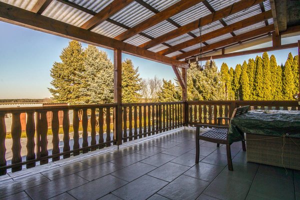 Bei schlechtem Wetter können Sie auf der großen gefliesten Terrasse entspannen die auch einen direkten Zugang in den Garten ermöglicht.