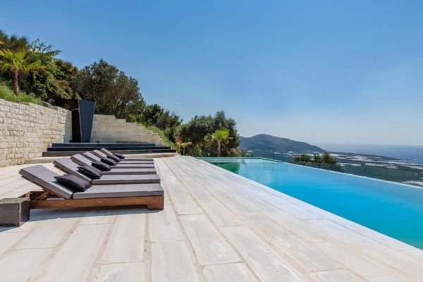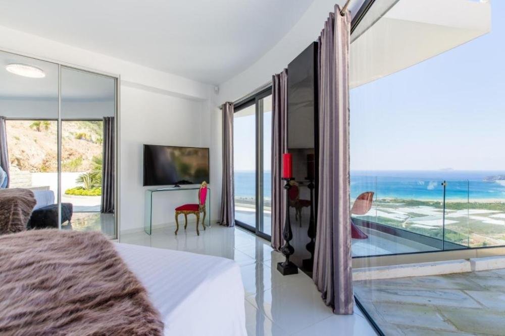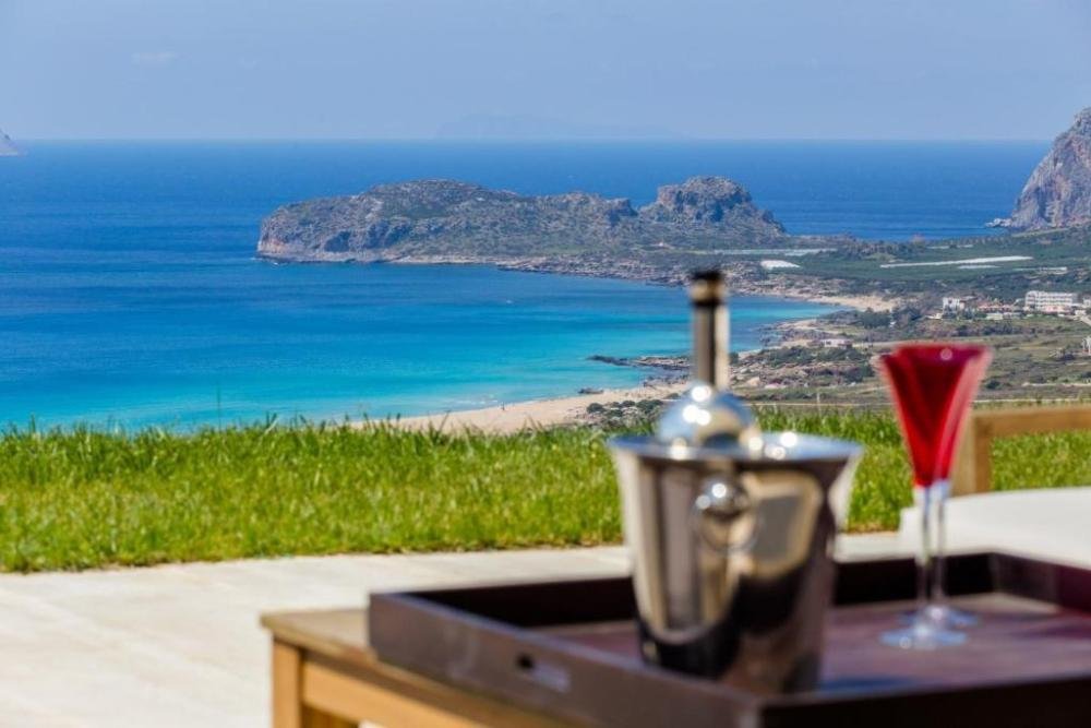 Draußen verfügt das Anwesen über einen Infinity-Pool, schöne Gärten und viele Terrassen und Außenbereiche, darunter einen Grill und einen Essbereich im Freien, aber auch einen 180-Grad-Panoramablick auf den berühmten Strand von Falassarna.