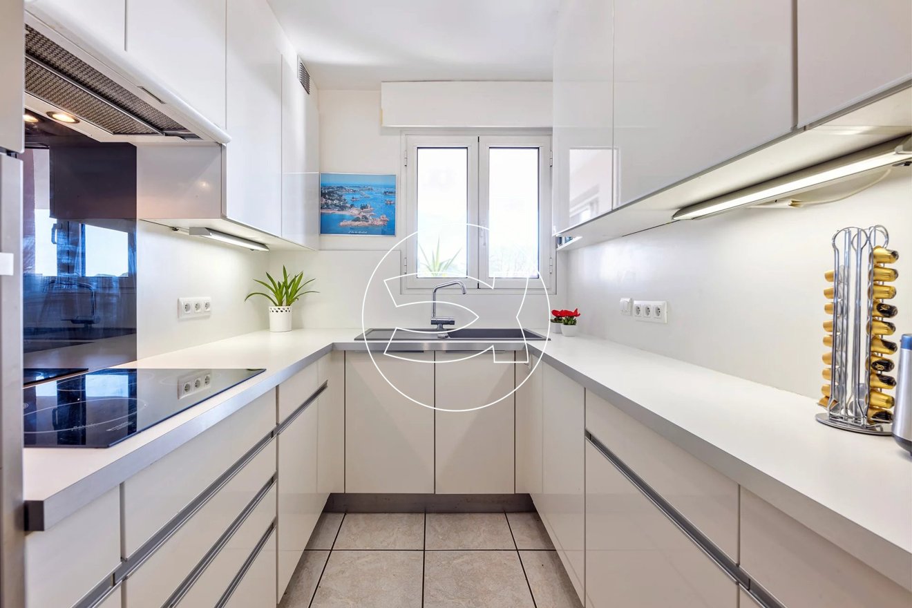 Sie befindet sich in einer gehobenen Residenz im 1. Stock von insgesamt 3 Etagen mit Aufzug und umfasst ein geräumiges Wohnzimmer, das sich auf eine 17 m² große Terrasse öffnet, eine kürzlich renovierte separate Küche, 2 große Schlafzimmer, von denen eines über ein eigenes Badezimmer verfügt, ein weiteres Badezimmer und zwei Toiletten.
