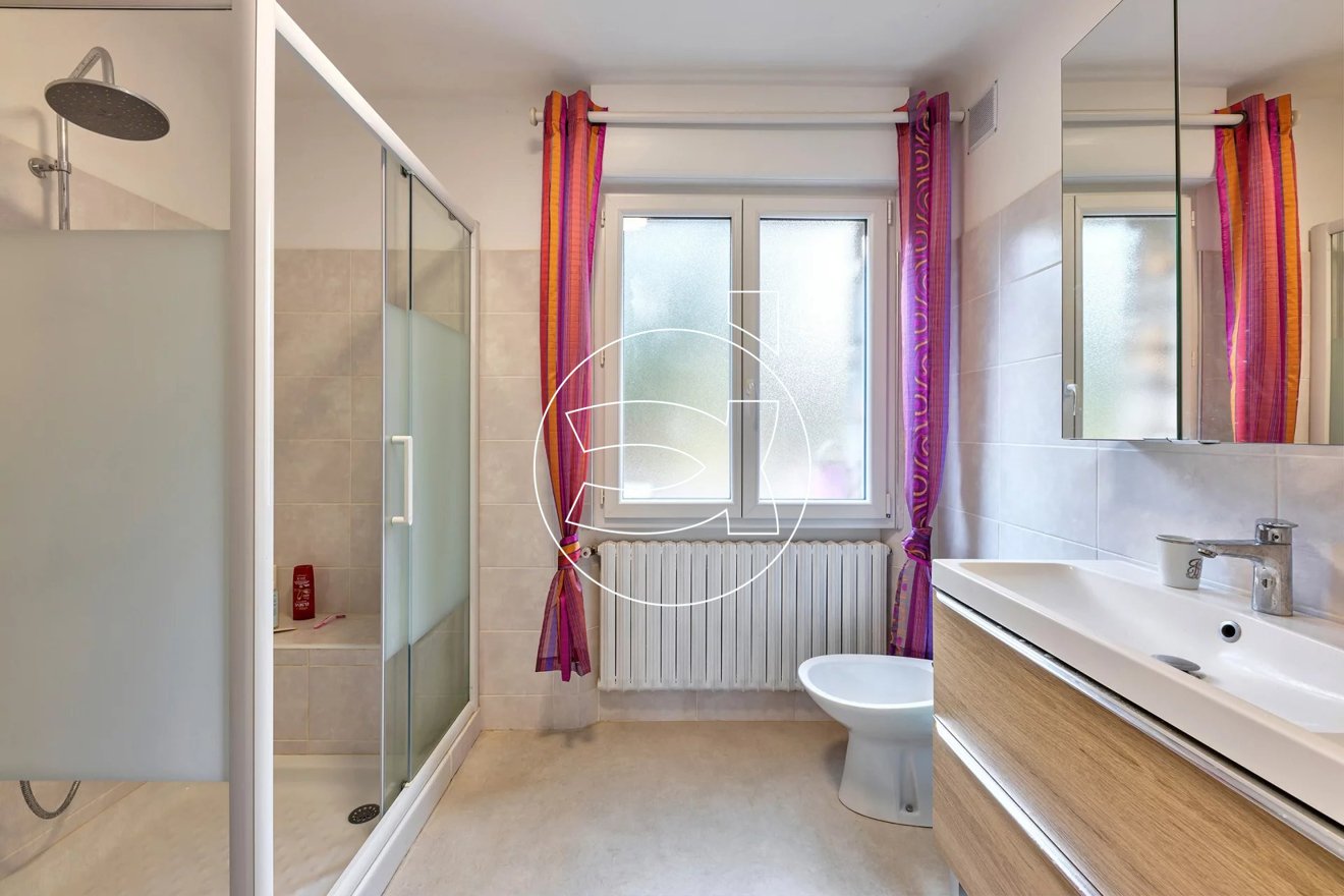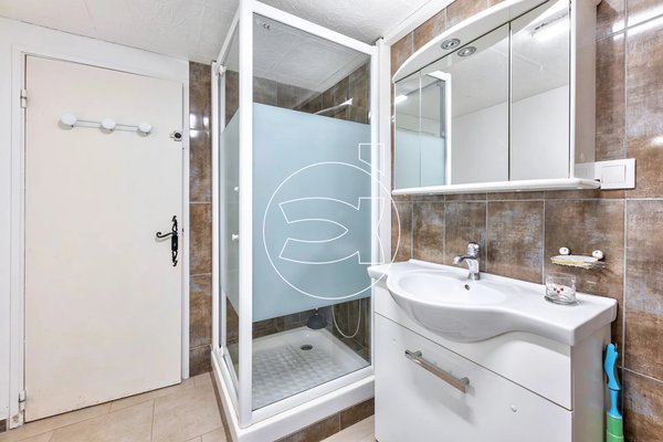Das Gartengeschoss umfasst ein Wohnzimmer mit offener Küche, ein Schlafzimmer, zwei Duschbäder mit Toilette, eine separate Toilette sowie eine Garage.