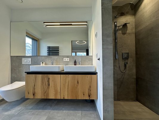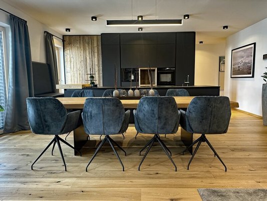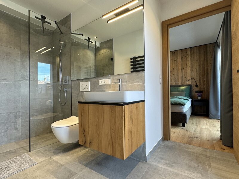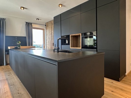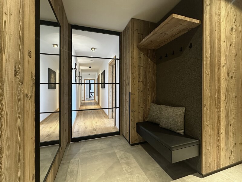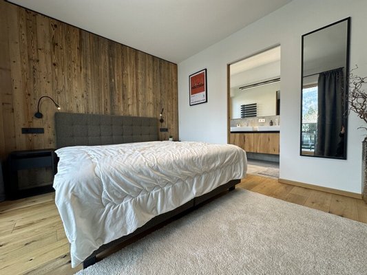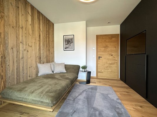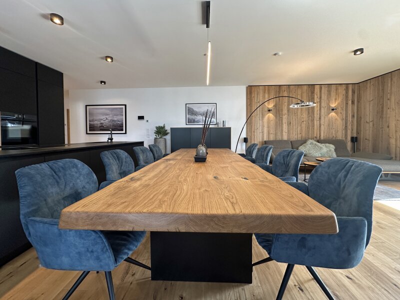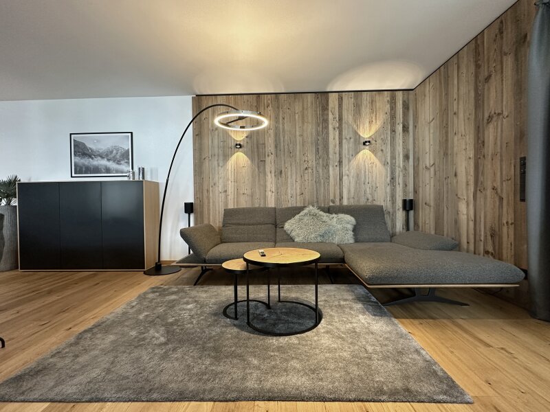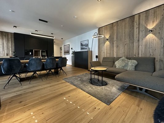 Die zum Verkauf stehende, im Chalet-Stil ausgebaute Wohnung im ersten Obergeschoß ist komplett und sehr hochwertig von einem heimischen Designteam eingerichtet worden. Großer Wert wurde dabei auf die Qualität der verwendeten Materialien und deren maßgefertigte Verarbeitung gelegt. Über ein bereits sehr einladendes Foyer mit Garderobe und Gästetoilette kommt man an drei Schlafzimmern und zwei Bädern vorbei in den lichtdurchfluteten Wohn-Essbereich mit vollausgestatteter Küche samt Abstellraum - viel Platz also für Familie und Freunde.