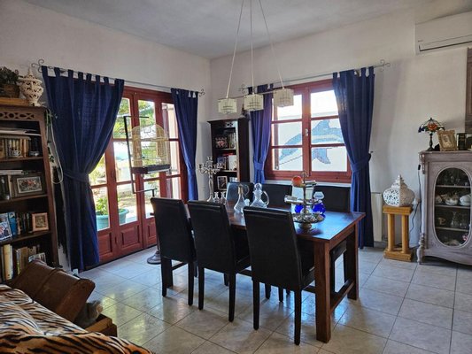 Dieses schöne Haus bietet 143 m² Wohnfläche auf zwei Ebenen, auf einem 352 m² großen Grundstück. Es liegt am Hang mit Blick auf das Dorf Milatos und den Strand von Milatos und bietet einen ungehinderten Panoramablick auf das Meer und die Berge.