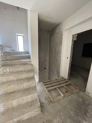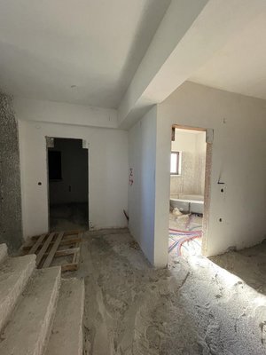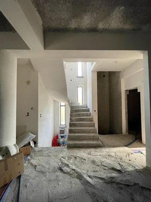 Wenn Sie nach draußen gehen, befindet sich der Eingang zum Grundstück auf der Rückseite, sobald Sie die Hauptstraße verlassen. Eine schöne Auffahrt führt Sie zum Garagentor, während Sie gleichzeitig ein anderer Weg zum Haupteingang des Hauses führt. Die Fassade und der Hinterhof sind durch Betontreppen verbunden, die sich an den Seiten des Grundstücks befinden. An der Vorderseite befindet sich ein großer 62 m² großer Swimmingpool, direkt neben einer großen Außenterrasse, die als Grillbereich dienen soll. Last but not least bieten Ihnen die Balkone einen erhöhten Blick auf die nahe gelegenen Häuserblocks und die Berge.