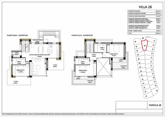 Diese kleine Anlage besteht aus 28 Luxusvillen, die über 3 oder 4 Schlafzimmer und 3 Badezimmer und zum Teil auch über Keller verfügen. Die Häuser bieten ein bioklimatisches Design und geräumige und helle Räume, von denen Sie in den meisten Fällen eine sehr schöne Aussicht genießen können.